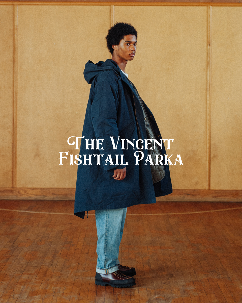 Introducing the Vincent M1965 Fishtail 2-in-1 Parka. The outer layer reimagines the classic M65 fishtail jacket with a modern twist, featuring a heavy cotton twill shell and detachable ripstop liner. it's two-in-one design allows the inner onion-quilted liner to be worn separately, offering a light down fill for year-round versatility.